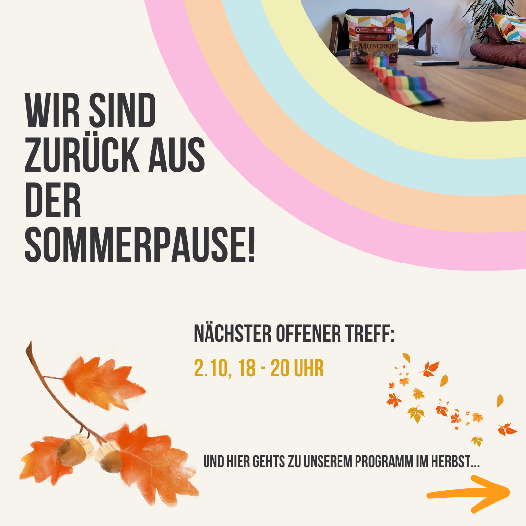 Wir sind zurück aus der Sommerpause! Im Herbst erwarten euch viele spannende Veranstaltungen. Oktober: 02.10: Welcome […]